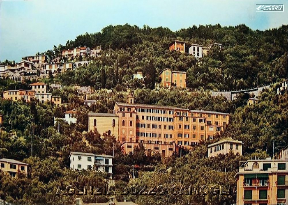 soprastante il Porticciolo di Camogli. La massiccia costruzione è il monastero dei frati Benedettini Olivetani di S. Prospero, fondato nel 1880 nel luogo ove si trovava l'antica cappella intitolata a S. Prospero, Vescovo di Terragona. Il monastero venne fondato per iniziativa dell'Abate olivetano Giovanni Schiaffino, originario di Camogli che resse la struttura fino al 1887, anno della sua morte. Ampliato nel corso
