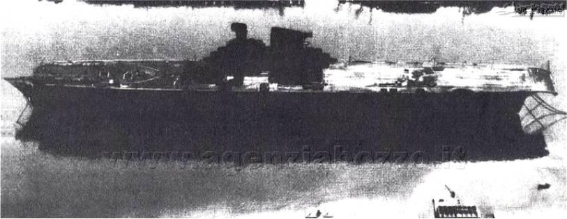 corazza sulla pista di lancio prodiera. Note tecniche e storiche della portaerei Aquila alla scheda 383C. Altre immagini della portaerei Aquila alle schede 384C, 385C, 2917C, 2918C, 2919C, 3568C, 3569C, 3570C, 3572C. |